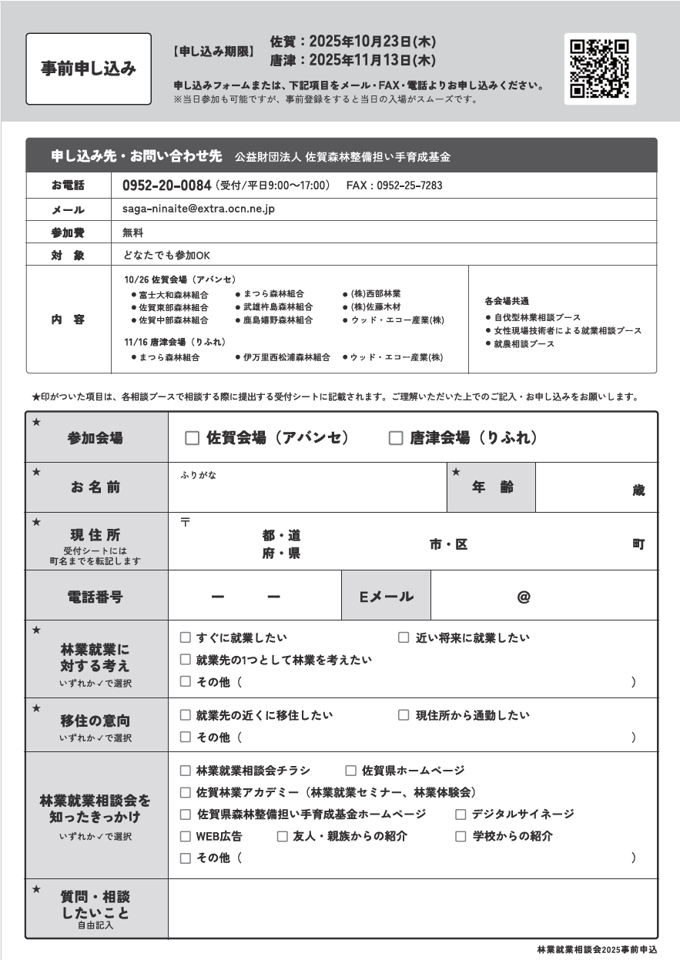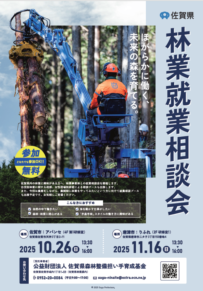 佐賀県内の林業に興味がある方へ、県内の林業事業体との就業相談会を開催します。